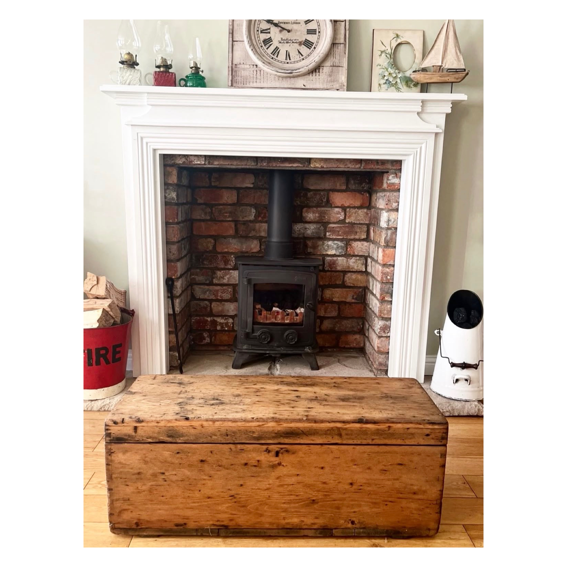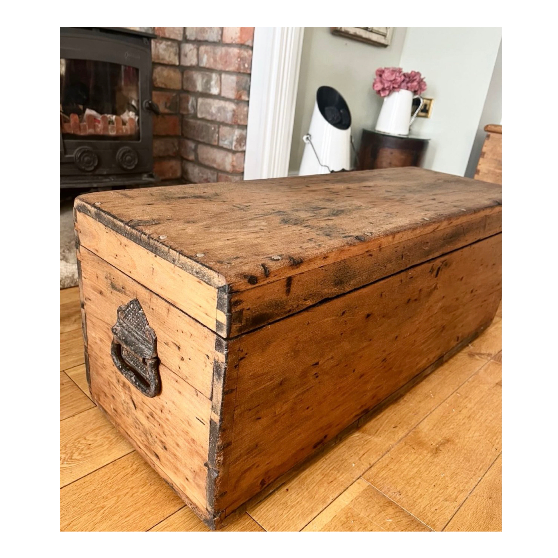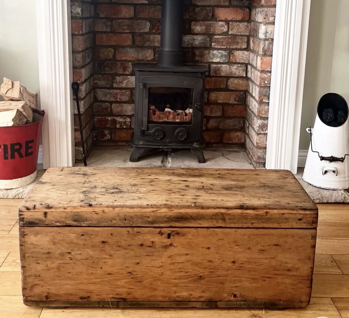 Beautiful vintage wooden storage trunk ….. practical and charming.